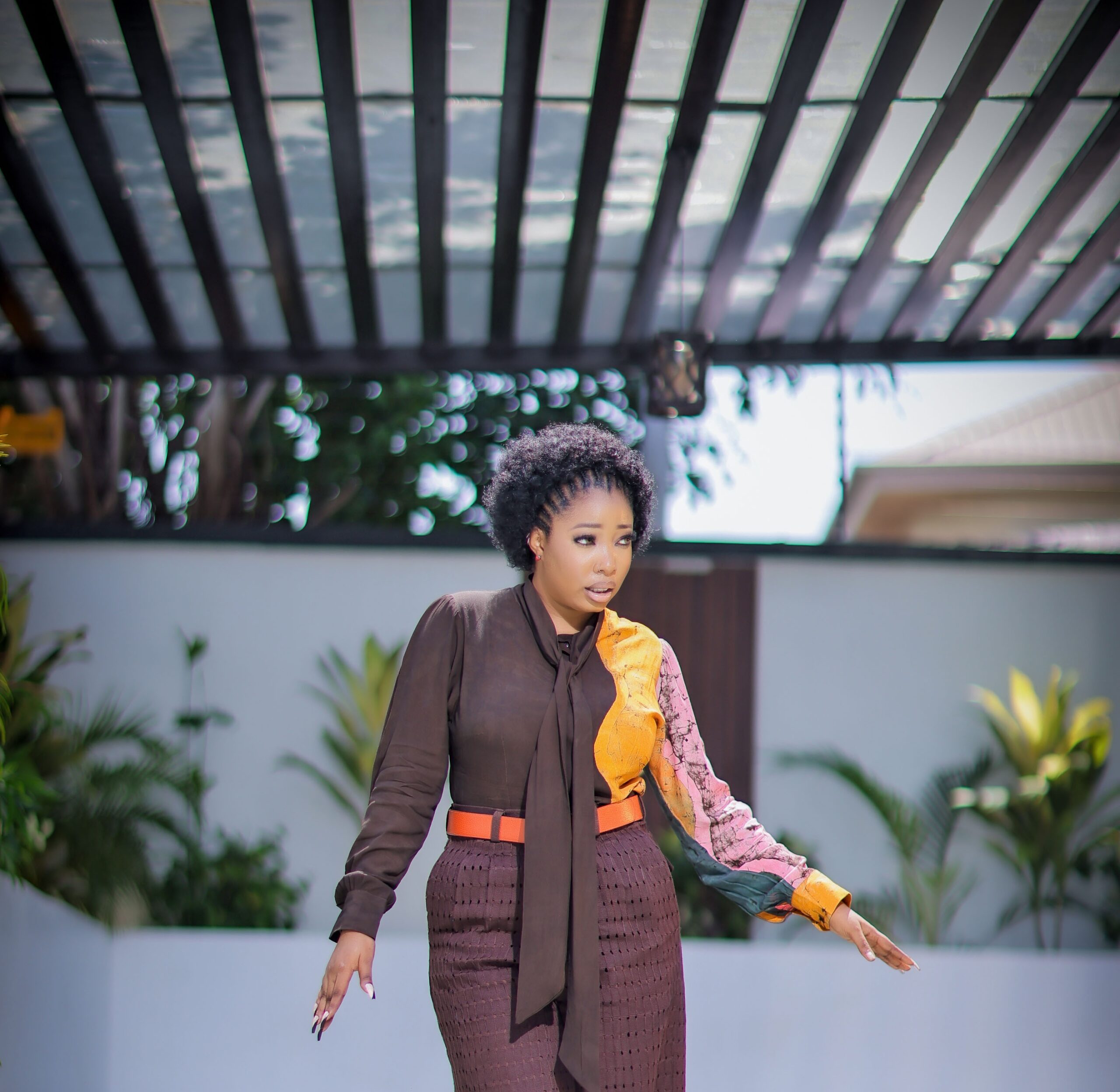 Wavy tie neck top